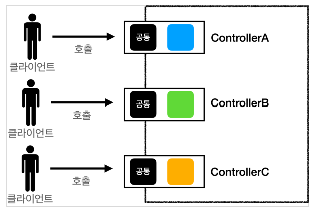 > 컨트롤러 호출 전에 먼저 공통 기능을 처리해야만 해결 가능